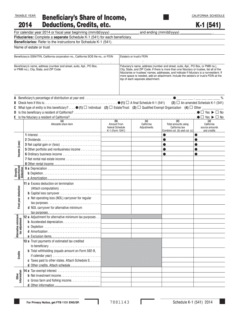 CA FTB 541 Schedule K1 2014 Fill out Tax Template Online US from www.uslegalforms.com